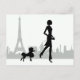 Girl and Pudel Paris Skyline Eiffel Torn Vykort