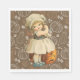 Halloween paper napkins with a little girl in old-fashioned dress, carving an apple and throwing the peal over her shoulder. This was a game played by children. The apple peal was to fall indicating the initials or name of their future betrothed.