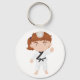 Karate är en underbar verksamhet som måste engageras i. Den här designen har en tjej som gör karat. Hon står ansikte på och flickan visar sig från en karatsäng. Hon är klädd i fullt karatutrustningen. Den här tjejen som gör karatdesign ser underbar ut på den här nyckelkedjan. Perfekt för dig själv eller som gåva