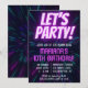 Girl Neon Lila Rosa Födelsedagsfest Inbjudningar