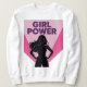 The image displays a graphic with the phrase “GIRL POWER” in bold, capitalized letters at the top. Below the text is a stylized silhouette of a person with long hair and hands on hips, suggesting confidence. The background is pink with lighter pink rays emanating from behind the figure, giving an empowering and dynamic feel to the design. This image is interesting as it represents a message of female empowerment and strength. A imagem mostra um gráfico com a frase “GIRL POWER” em letras maiúsculas e em negrito no topo. Abaixo do texto há uma silhueta estilizada de uma pessoa com cabelos longos e mãos nos quadris, sugerindo confiança. O fundo é rosa com raios rosa mais claros emanando por trás da figura.