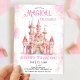 Girl Rosa Castle Princess 9th Födelsedagsfest Inbjudningar