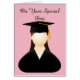 Söt konst bild av en tjej som är klädd i hatten och som är avsedd för studenten finns på detta hälsningskort. Kortets framsida lyder: "På din Speciella dag" och inuti lyder: "Må din framtid vara ljus, Vi är så stolta över dig, Grattisar på din Studenten!" Ett sött kort att skicka till en familjemedlem eller vän!