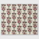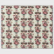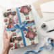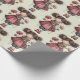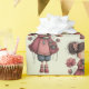Wrapping paper with a cute retro image featuring a whimsical girl with rosy cheeks and flowers in her hair. Carrying a green frog doll.