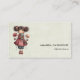 Business card with a cute retro image featuring a whimsical girl with rosy cheeks and flowers in her hair. Carrying a green frog doll.