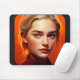 A girl with blue eyes on an orange background, dark black and crimson, photorealistic fantasies, personal iconography, detailed character design, shiny/glossy