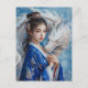 En serengrafik av en ung flicka som håller en liten drake under körsbärssans blommar, som representerar den kinesiska zodiaksignalen Dragon. Perfekt för kulturella eller zodiaktematiska samlingar.