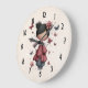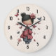 A clock with an image of a young girl holding a butterfly wand. An adorable unique retro style doll with rosy cheeks. Butterflies flying all around. Sweet and cute.