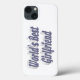 Phone case with World's best girlfriend in 3D blue gray text. Available for several phone styles.