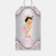 Flickornas baptism-gåva är ett tack för dina märkre med söt ängel baby på en vacker rosa och silver-snurrande bakgrund. Du kan lägga till valfri text i det teckensnitt som du föredrar i stil och färg.