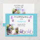 En roligt med en ung flicka som rider sin nya lila-cykel nedför land väg. Två fler lila cyklar har en mönstrad gräns, ballonger och muffinsar som fyller på din födelsedagsinformation.