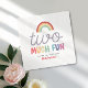 Celebrate turning two with these adorable “Two Much Fun” birthday napkins! Featuring a modern retro rainbow, colorful font and space to add your child’s name on the front. Perfect for a 2nd birthday party.