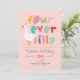 This cute and whimsical “Four Ever Silly” 4th birthday invitation features an adorable silly goose holding a balloon, playful colorful typography, and a trendy pink background. Personalize with your party details to create a fun and unique invite for your little one’s fourth birthday celebration. The reverse showcases a matching pink gingham pattern - perfect for a silly goose or farm-themed 4th birthday party.