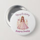 A cute pink round badge for girls featuring a sparkling princess design with space to personalise a name. Fun for birthdays, parties, or everyday dress-up play.