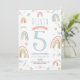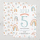 Den här söta och visuella barnens födelsedagsinbjudan har en rosa vattenfärgsboho-regnbåge, med en passande regnbåge och blommönster på baksidan. Det finns utrymme för dig att lägga till all information du behöver för ditt barns regnbåge party, inklusive plats och kontaktnummer. Perfekt för ett barns femte födelsedag, och kan redigeras för vilken annan ålder som helst!