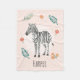 Denna söta och moderna barnfilt har en vattenfärgszebra tecknad med en rosa bakgrund med blommor och botaniska ämnen och kan vara personlig med dina flickor namn. Den idealiska djungelns safari-temade gåva till vilken djurälskare som helst!