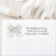A lovely return address label with feminine styling featuring a dusty blue watercolor bow with ivory white flowers. A lovely silver cross sits above the bow as a symbol of Christianity. The attractive text template arranges your text in classic style. Easy to personalize with your information, this return address label is part of a coordinated collection to celebrate a girl's first holy communion.