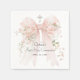 A lovely First Holy Communion napkin with feminine styling featuring a pastel pink watercolor bow with pink flowers. A lovely silver cross sits above the bow as a symbol of Christianity. Easy to personalize and prepare for this momentous occasion in the life of your daughter. This design is perfect a girl celebrating this important religious rite. This napkin design is available in 3 sizes; shown here in the smaller cocktail size, they are also available in luncheon and dinner sizes with either plain or coined edges.