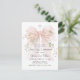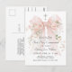 Beautiful feminine styling in this Girl's First Holy Communion post card Invitation with a pastel pink watercolor bow embellished with pink flowers. A lovely silver cross sits above the bow as a symbol of Christianity. The attractive text template arranges your text in classic style. Easy to personalize and prepare for this momentous occasion in the life of your daughter. The back of the card has additional text that you can edit with your text. This design is perfect a girl celebrating this important religious rite.