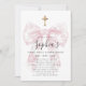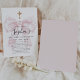 Girl's First Communion Pink Toile Bow Cross Inbjudningar