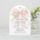 Girl's First Holy Communion Pink Floral Bow Arched Inbjudningar