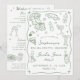Designed in a soft sage green and white color palette, this two-sided bachelorette weekend invitation features hand-drawn doodle style art illustrations, including pajama sets, sleep masks, lipstick, cocktails, champagne, pizza, popcorn, bows, cherries, and beauty essentials. The playful doodle-style artwork paired with relaxed handwritten and clean serif typography creates a trendy, aesthetic look that feels fun, feminine, and social media-worthy.