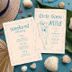 The perfect invitation for the low key beach loving bride. The front features a girls gone mild theme in blue and sand colors and the back includes a template for your weekend itinerary.