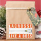 Lacrosse-presentklistermärken, party favors- och kuvertförseglingar med Lacrosse som ett citat från Chef och kvinnors slappa stift på orangens bakgrund.