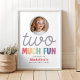Celebrate turning two with this adorable “Two Much Fun” birthday welcome poster for girls! Featuring a modern and minimalist retro colorful font and space to add your child’s photo on the front. Perfect for a 2nd birthday party.