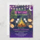 Light up the night with this magical and vibrant girls purple campfire s'mores birthday party invitation. A roaring golden campfire with roasting marshmallows and gooey s'mores glows warmly against a stunning deep purple moonlit forest backdrop, with twinkling string lights draped through the trees and a glowing crescent moon creating an enchanting, almost fairy-tale nighttime atmosphere. The bold colorful lettering and playful "Birthdays Are S'more Fun With Friends" headline perfectly capture the excitement of a nighttime outdoor celebration — ideally suited for backyard campfire parties, evening glamping birthdays, purple-themed outdoor gatherings, or any adventurous girl who loves both the magic of the night sky and the joy of roasting s'mores with her best friends. The rich purple palette gives this design a distinctly feminine yet adventurous energy that beautifully bridges glamorous and outdoorsy. Fully customizable with your child's name, age, date, time, address, and RSVP details. A wonderfully magical invitation for an unforgettable birthday night.