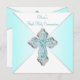Flickans tealblåa Kommunision med elegant tealblått och silver diamant kor på en vacker tealblått bakgrund. Du kan enkelt anpassa den här söt teal blue First Communion-inbjudan genom att lägga till din händelseinformation i teckensnittet storlek & färg, och den text du väljer.