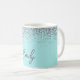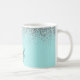 Aqua Blå - Teal Glitter Gnistrande Borrade Metall Monogram Namn och Initial Kaffe Kopp eller Mugg. Detta gör den perfekta söta 16-års födelsedag, bröllop, bröllops shower, årsdag, baby shower eller möhippa present för någon som älskar glamour lyx och chic stilar.