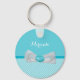 Girly Aqua Gingham Cute Pearls Ro Bow with Namn Nyckelring