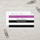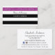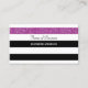 Anpassa det här moderna svartvita affärskortet för ränder av vågrät med ett glatt lila glitter-liknande rand genom att lägga till ditt namn och ditt företag. Den här mönster-designen med glam-trendig har ett ställe på baksidan för att lägga till kontaktinformation, inklusive social-mediehandtag. Platt utskriven bild, INTE glitter.