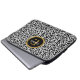 Ett svart och vitt leopard mönster med ett monogram för guld och svart elegant dekorerar detta laptop sleeve. Anpassa den för dig själv eller för en gåva! Designad av Blackberry Boulevard.