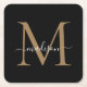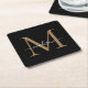 Girly Black Guld Monogram Elegant Modern Square Papper Underlägg