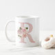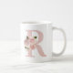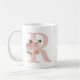 Klassens moderna serif brev R med en faux blek ro guld glitter med en samordnande glitter för ro av blommigt av glam dekoration av guld och rosa på ett klassiskt kopp. Glam-grafiken i glitter är digitalt skapat och skrivs ut platt som ett foto. Monogram mugg ger en underbar gåva till medlemmar av brudens sida.