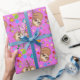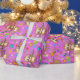 Girly Cute Sloth Rosa Mönster Baby Shower Birthday Wrapping Papper Elegant, lustigt och trendig som är pappert för att ge din gåva en trevlig beröring. Den här designen har färgstarka stjärnor/hjärtan/blommor, vidhäftande skogsslätte och botaniskt löv på rosa bakgrundsbrickor mönster.