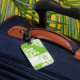 Ett vitt dammmönster i söt över en bakgrund i vår-grönten, förskönat med ett rent band och ett monogram. Anpassa bagagetaggen genom att ange ditt monogram och kontaktinformation i designmallen.