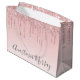 Girly och glam rosa ros guld droppar glitter med stora presentpåsar med ditt eget namn i ett elegant grått-skript. Du kan ändra texten färg och teckensnittet stil och storlekt med hjälp av anpassningsalternativet!