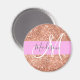 Glam och giftig rosa, persika, guld glitter-gnistor, vit monogram namn och initial magnet. Ditt eget namn och monogram är skrivna i ett skript med elegant och rosa bakgrund. Du kan ändra texten färg och teckensnittet stil och storlekt med hjälp av anpassningsalternativet. En perfekt födelsedag eller julklapp!