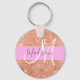 Glam och giftig rosa, persika, guld glitter-gnistor, vit monogram namn och inledande nyckelkedja. Ditt eget namn och monogram är skrivna i ett skript med elegant och rosa bakgrund. Du kan ändra texten färg och teckensnittet stil och storlekt med hjälp av anpassningsalternativet. En perfekt födelsedag eller julklapp!