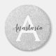 Girly Glam Silver Glitter Sparkles Monogram Namn Magnet