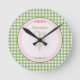 Girly Grönt Gingham Monogram med Namn Rund Klocka