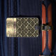 Mönstermönster i metalliska guld-toner i elegant förvrängs med metallisk lila som snurrar en personlig bagagemärkning.