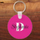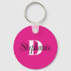 Girly Hot Pink Black and White Modern Monogram Nyckelring
