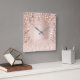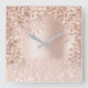 Girly i rosa ros Guld Spark Blommigt Glitter Fyrkantig Klocka