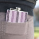 Tillsätt ett litet nyktert skikt till ditt personliga stil med denna gigantiska varierade lila och vita chevron rand mönster 6 oz kolv. Den här chicen och snyggt zigzag mönster kommer att lägga till ett modernt popup av färg i din omgivning.