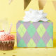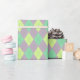 Den här gigantiska inslagningen av pappra har ett sött mönster med lila, grönt och kalkdiamanter och grönt prickad linjer.