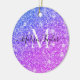 Girly Lila och Rosa Glitter Monogram Namn Julgransprydnad Keramik